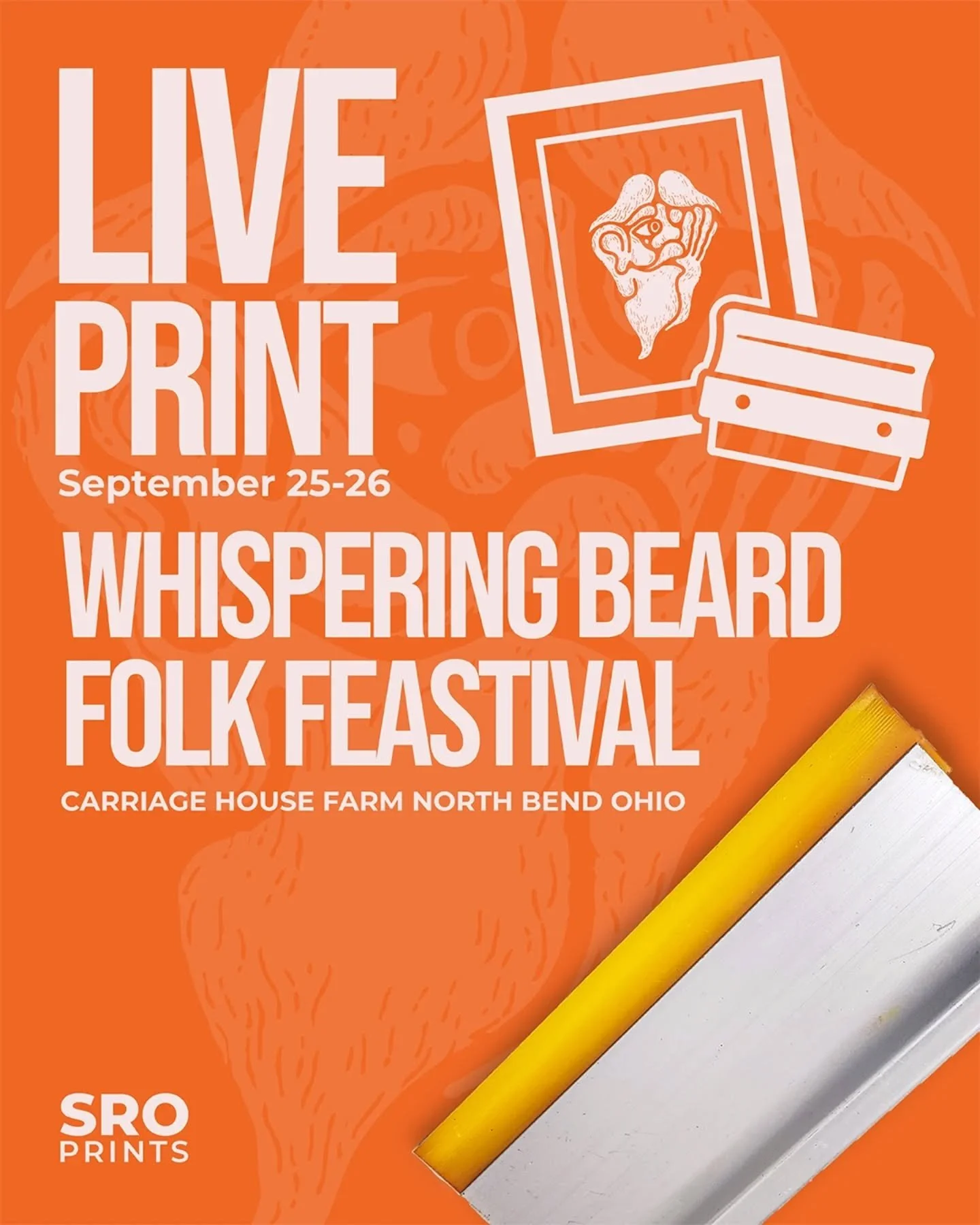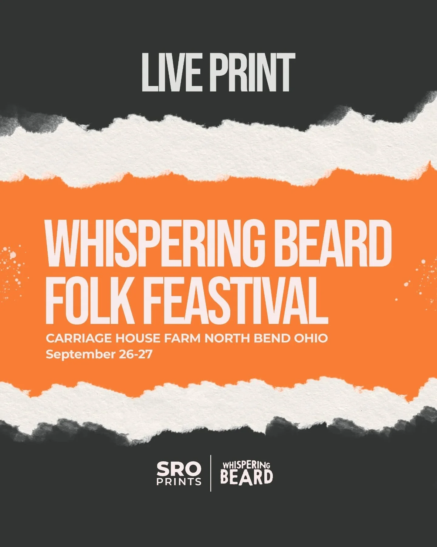 View fullsize 🎻πŸͺ•πŸŽ™οΈIt's been a long time coming, but you can find @sroprints at @whispering_beard this year! We're hauling our gear out to Carriage House and printing official Beard merch while your favorite folk and bluegrass musicians pluck and pick away. Come