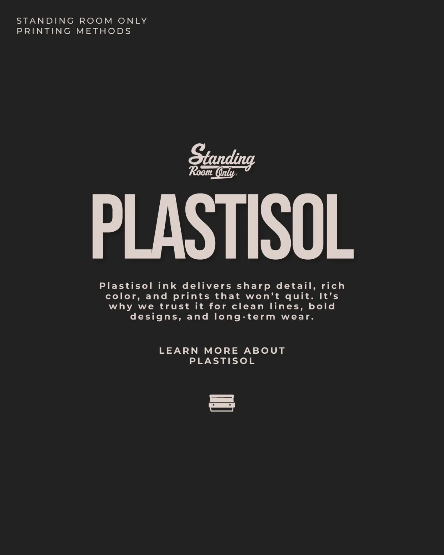 View fullsize Plastisol Ink | The most used method for printing in the industry. Find out why this method is right for your project with Standing Room Only!